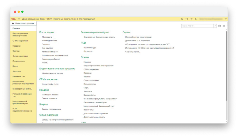 Так выглядит главная страница 1C:ERP