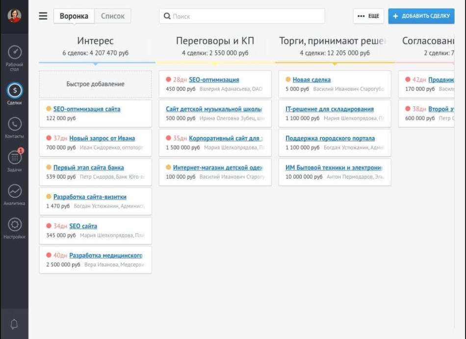 Так в AmoCRM отображаются сделки