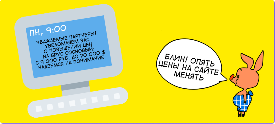 В идеальном мире поставщики сами шлют письма: мол, так и так, уважаемые партнеры, с завтрашнего дня брус дороже. И снабженец, получив такое письмо, передает информацию менеджерам, а те корректируют цены для покупателей.