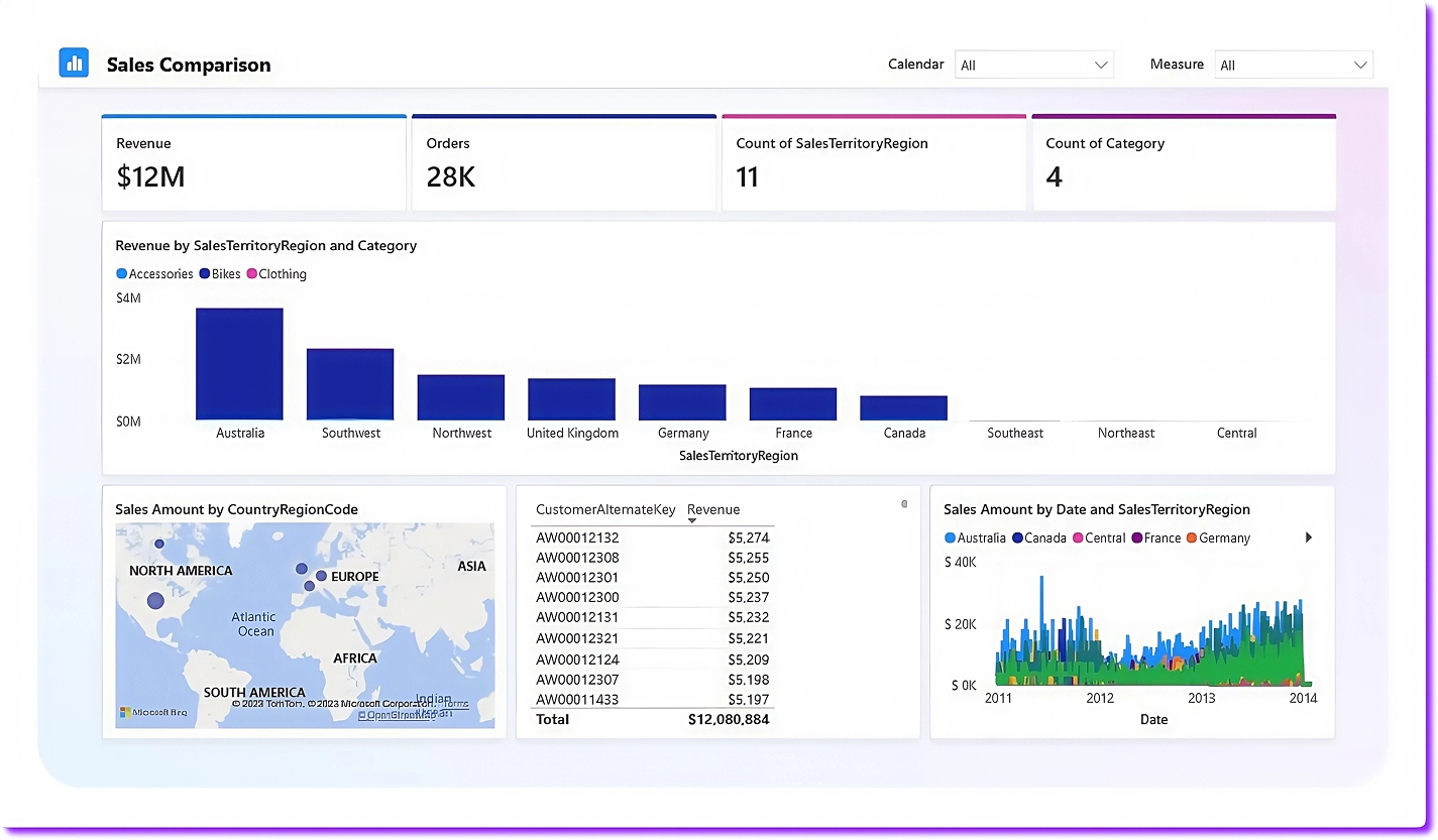Так выглядят данные после того, как им придают понятный вид. Анализировать и принимать решения при таком формате становится проще. Скриншот: программы Power BI