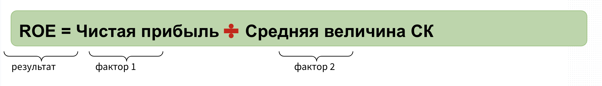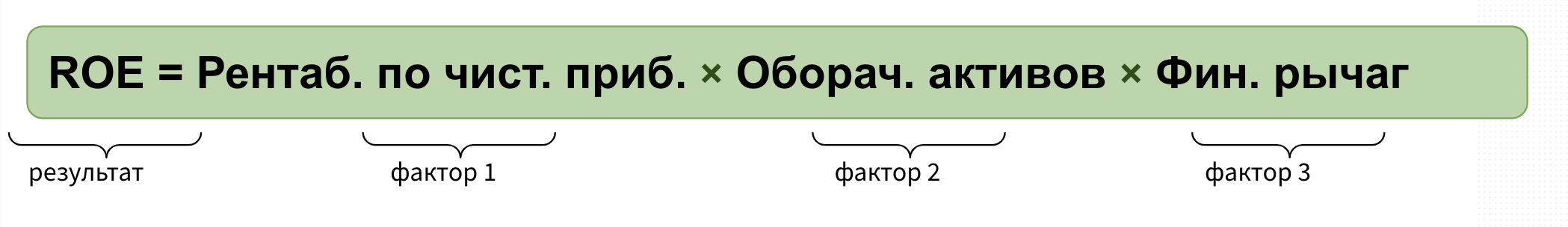 Еще один из примеров, любимая модель финдиров Нескучных, — модель ROE, где результат представлен произведением трех факторов: