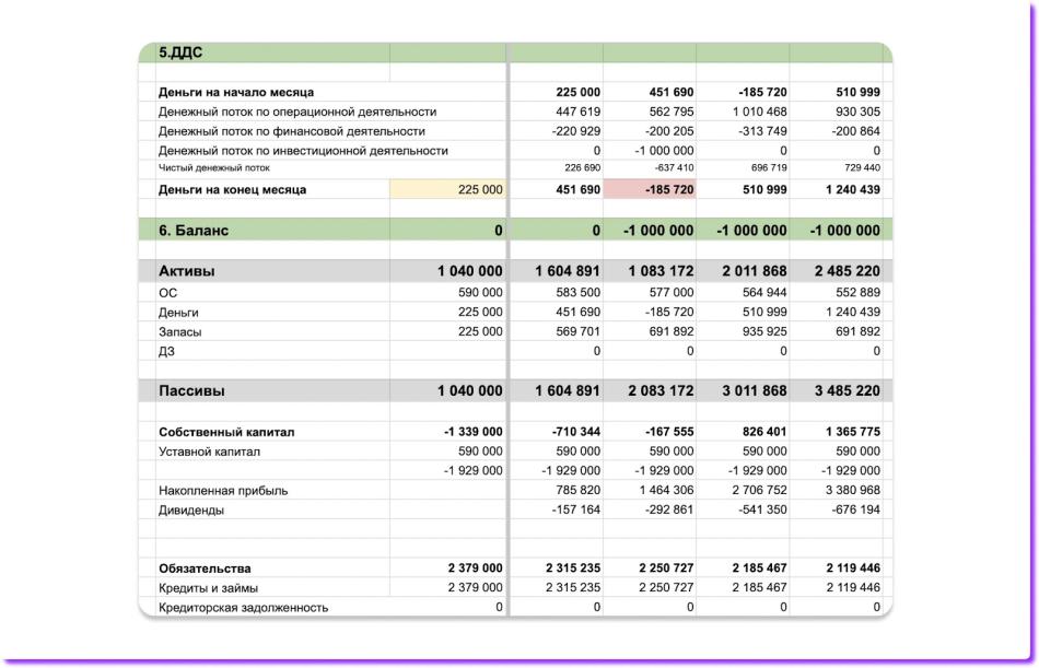 Так выглядит конец финмодели ↓