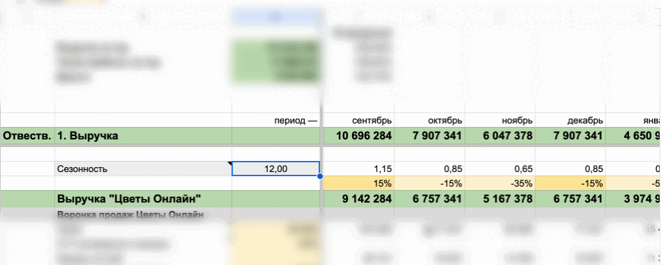 - Получившийся процент вставить в финмодель, чтобы она автоматически рассчитала коэффициент сезонности.