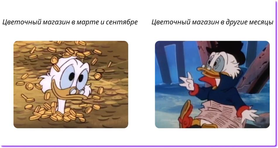 → Планировать закупки. Одна из задач цветочного магазина — заказывать поставки в нужном количестве, чтобы в несезон магазин не пустовал, а в прибыльные периоды приносил максимум денег.