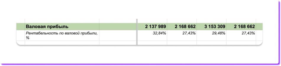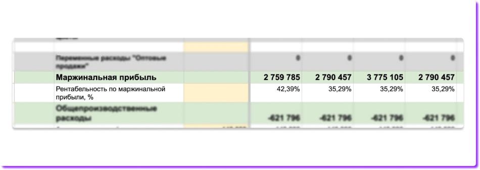 После этого финмодель рассчитает валовую прибыль — маржинальную прибыль, из которой вычитают общепроизводственные расходы ↓