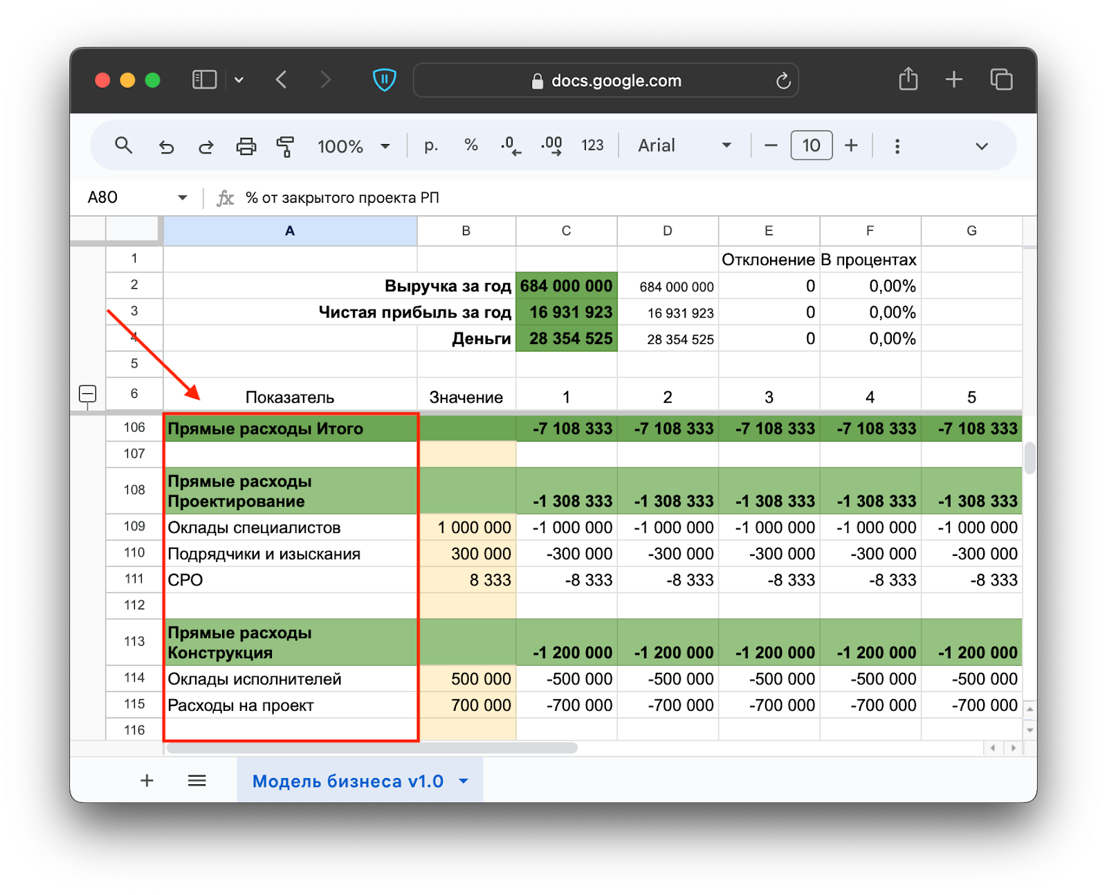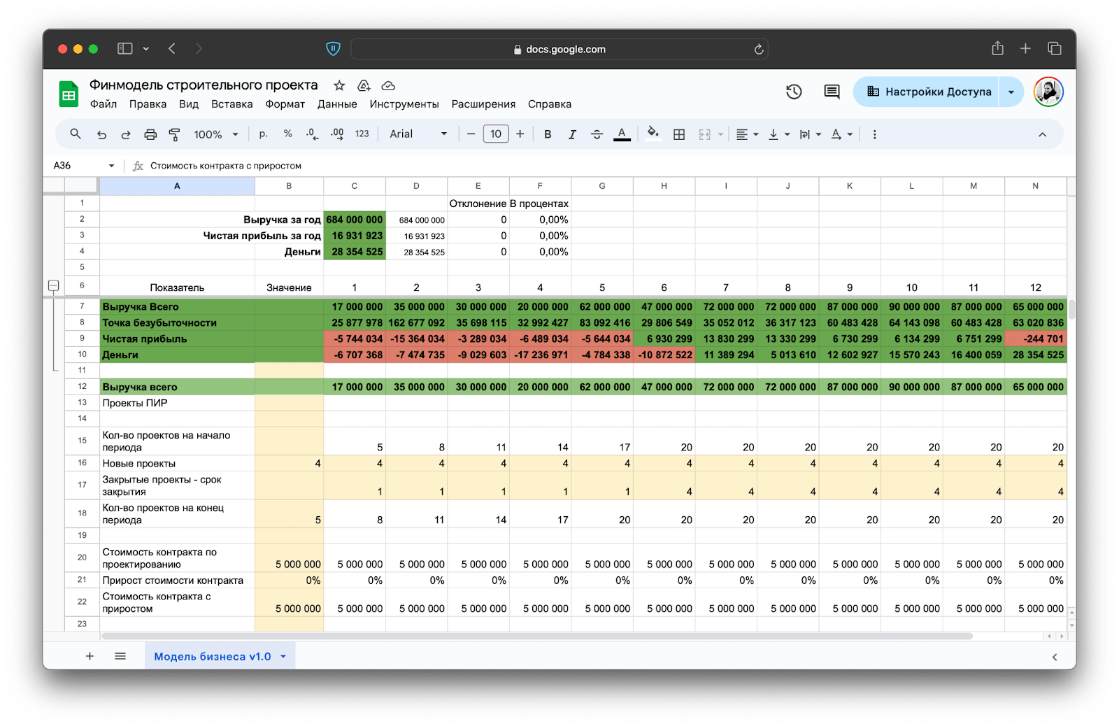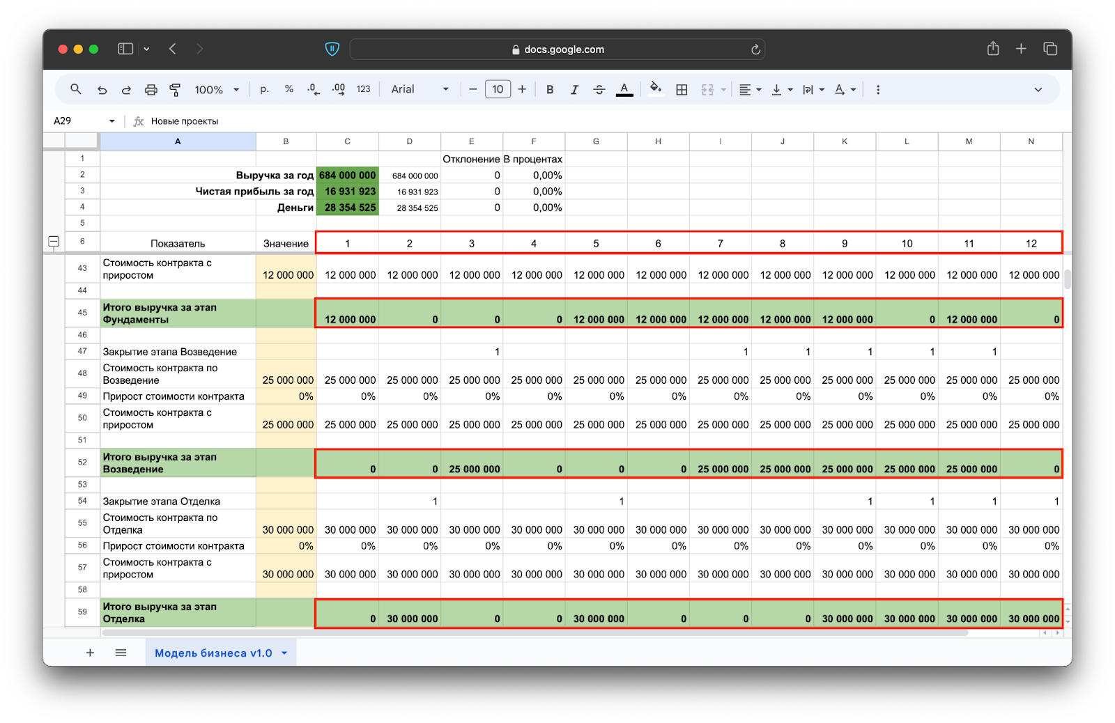 А теперь — покажем, как выглядит финансовая модель строительного проекта.