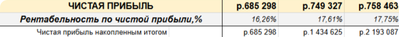 б) рассчитываем рентабельность, чистую прибыль и денежный поток.