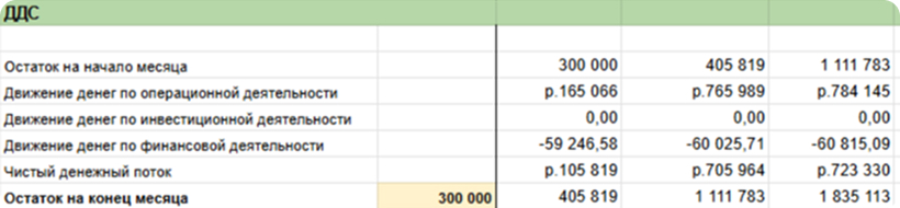 Важно в ДДС делить денежные потоки на вышеуказанные виды деятельности, чтобы видеть причины нехватки денег, иметь аналитику и принимать решения. Финмодель поможет в этом.