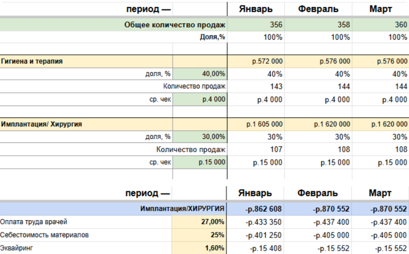 Заполнять финансовую модель будем на примере стоматологической клиники.