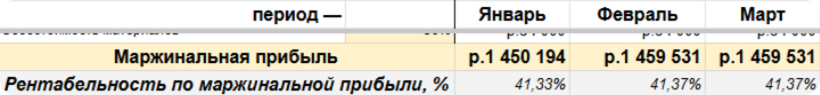 Шаг 4. Когда собрали переменные расходы в таблицу, адаптировали под бизнес, можем рассчитать маржинальный доход и рентабельность (все формулы прошиты в таблице).