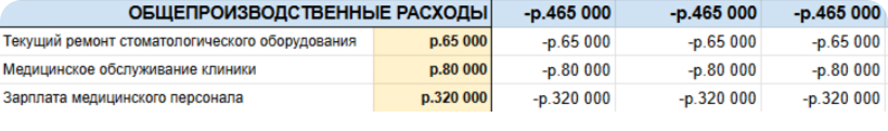 Общепроизводственные расходы названы так, потому что связаны с производством услуги. Отнести их к конкретному направлению стоматологии — имплантации или гигиене — нельзя, они нужны для всех направлений. Например, на текущий ремонт стоматологического оборудования, обслуживание клиники.