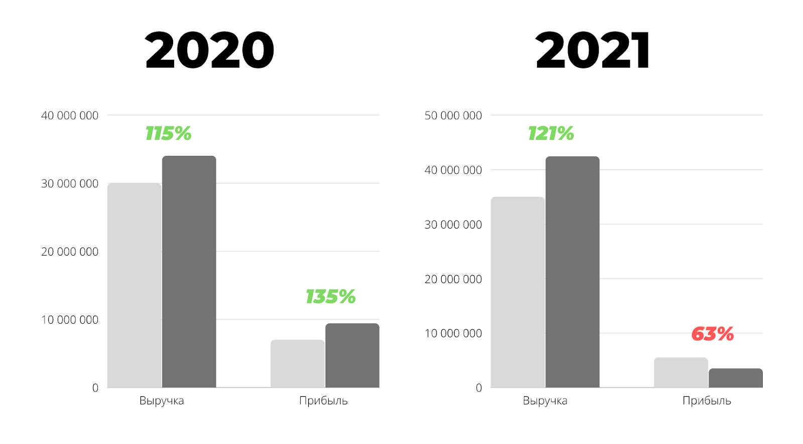 В 2021 году мы сработали с прибылью 3,5 млн — это на 6,5 млн рублей меньше, чем в 2020 году. Чтобы не повторить неудачу в 2022 году, мы разобрались в ее причинах и сделали пять шагов, чтобы в этом году выполнить планы по выручке и прибыли. Рассказываем, что именно предприняли.