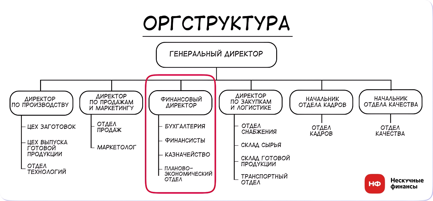 В зависимости от размера компании у финансового директора будут разные люди в подчинении ↓
