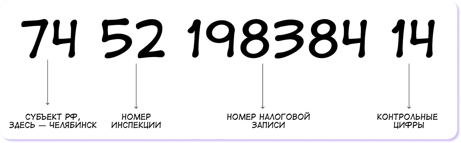 У набора цифр самого ИНН тоже есть расшифровка. Она зависит от статуса налогоплательщика — подробнее с примерами рассказываем в следующих разделах.