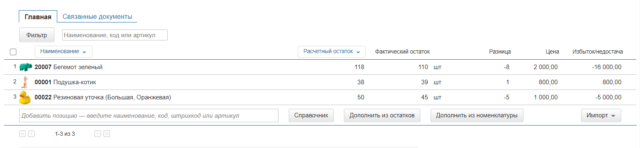 Данные по инвентаризации вносят в ведомость. В ней пишут, что за товар, сколько его, по какой цене, на какую сумму всего запасов. Чаще всего сразу же добавляют и в учетную систему, например, 1С или «Мой склад». Так потом будет легче с ними работать: сверяться с данными учета и анализировать товары. Но проще всего сразу же сканировать штрих-код товара, чтобы ведомость заполнялась автоматически.