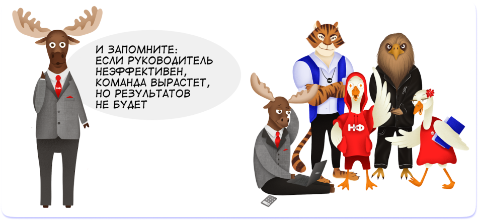 Итак, у руководителей есть набор инструментов, который позволяет им повышать личную эффективность — делать больше за то же время. Причем интересно, что, если руководитель неэффективен, команда будет расти и расширяться, но новых результатов не будет.