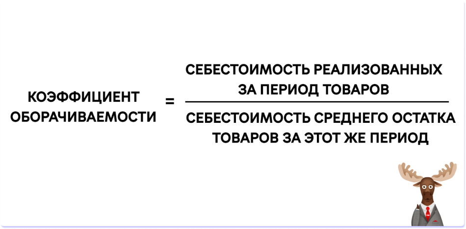 Так можно узнать, сколько раз за период, например, за месяц запасы пополняются и продаются. Если количество дней в этом периоде разделить на коэффициент, получится количество дней, которое запасы хранятся на складе.