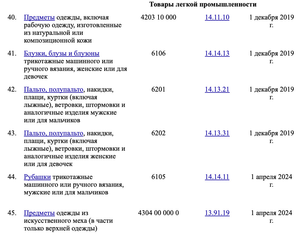 В России есть требования к обязательной маркировке товаров. Маркировать нужно детскую одежду, определённые виды мужской и женской одежды, а также спецодежду.