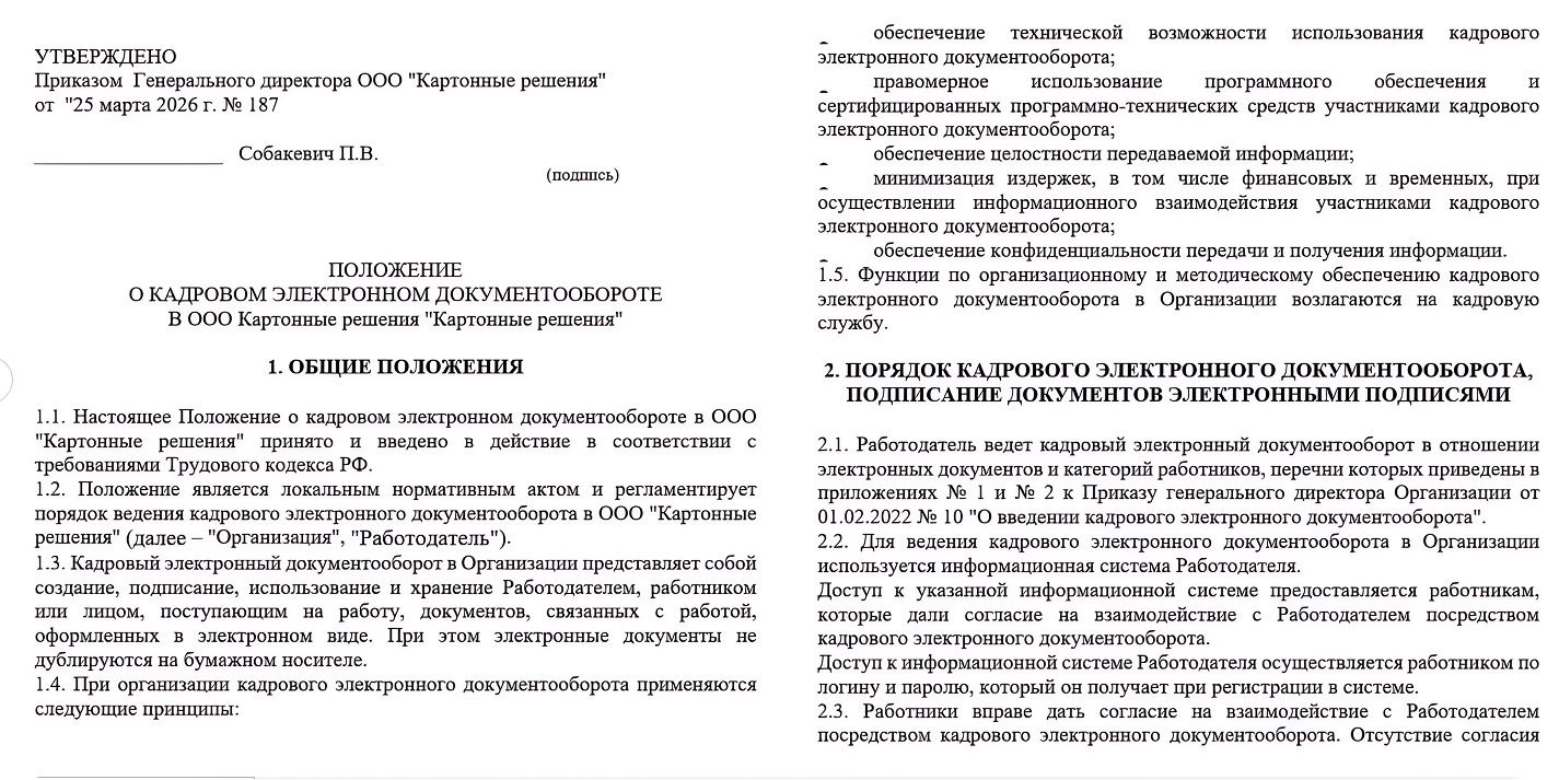 Положение о КЭДО. Главный регламент системы. В нём фиксируют:
