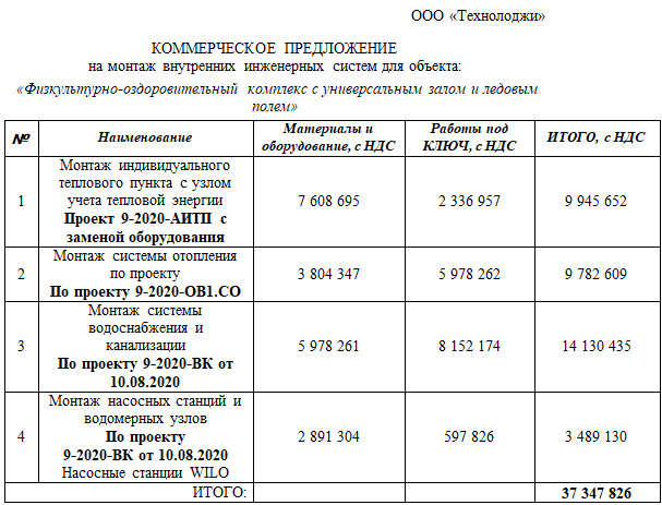 В коммерческом предложении на услугу прописываются: