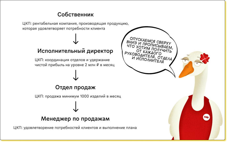 ↑ ЦКП поможет собственнику разделить зоны ответственности и донести до каждого исполнителя, что от него хочет получить бизнес