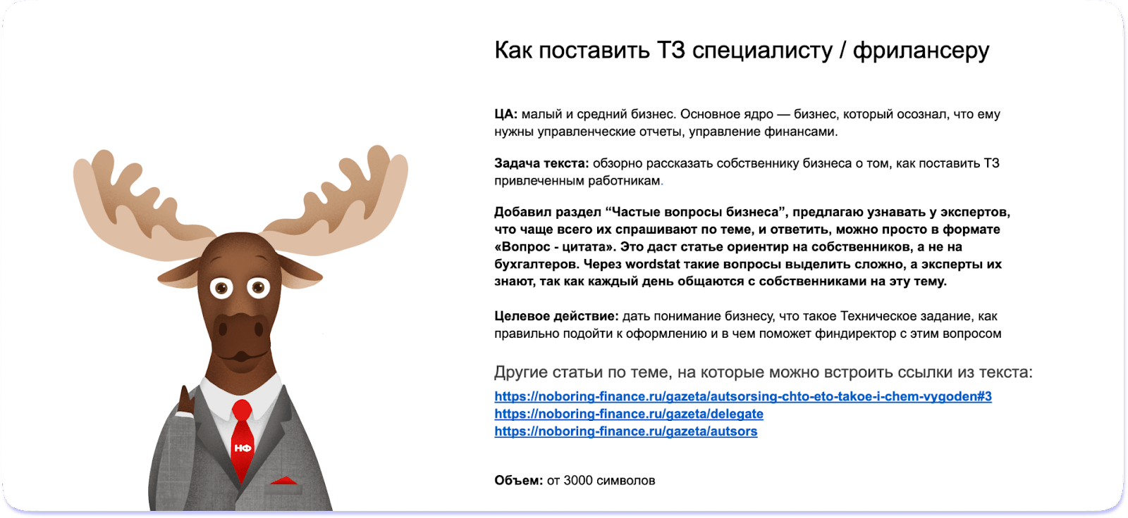 Это техзадание на статью, которую вы сейчас читаете
