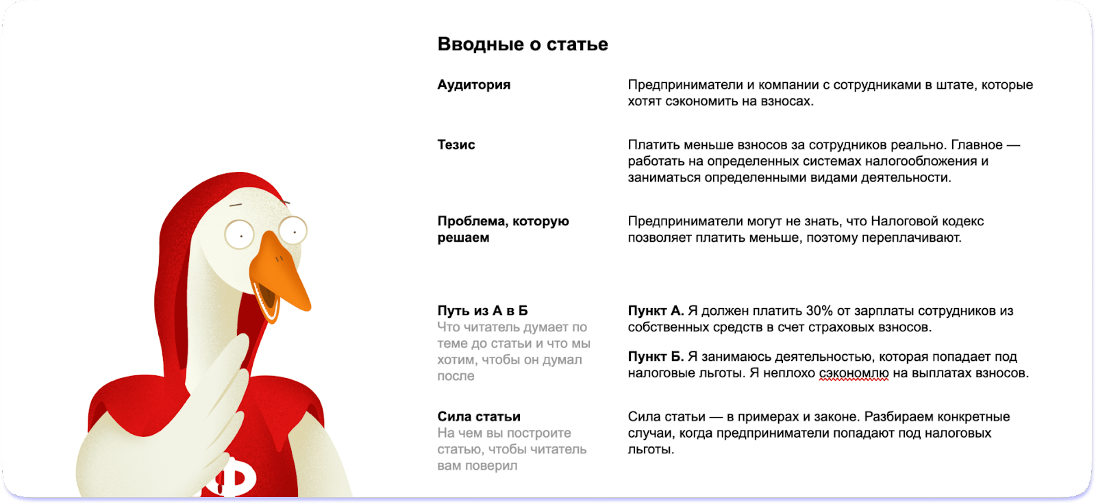 Это техзадание, которое я собирала для статьи о взносах ИП