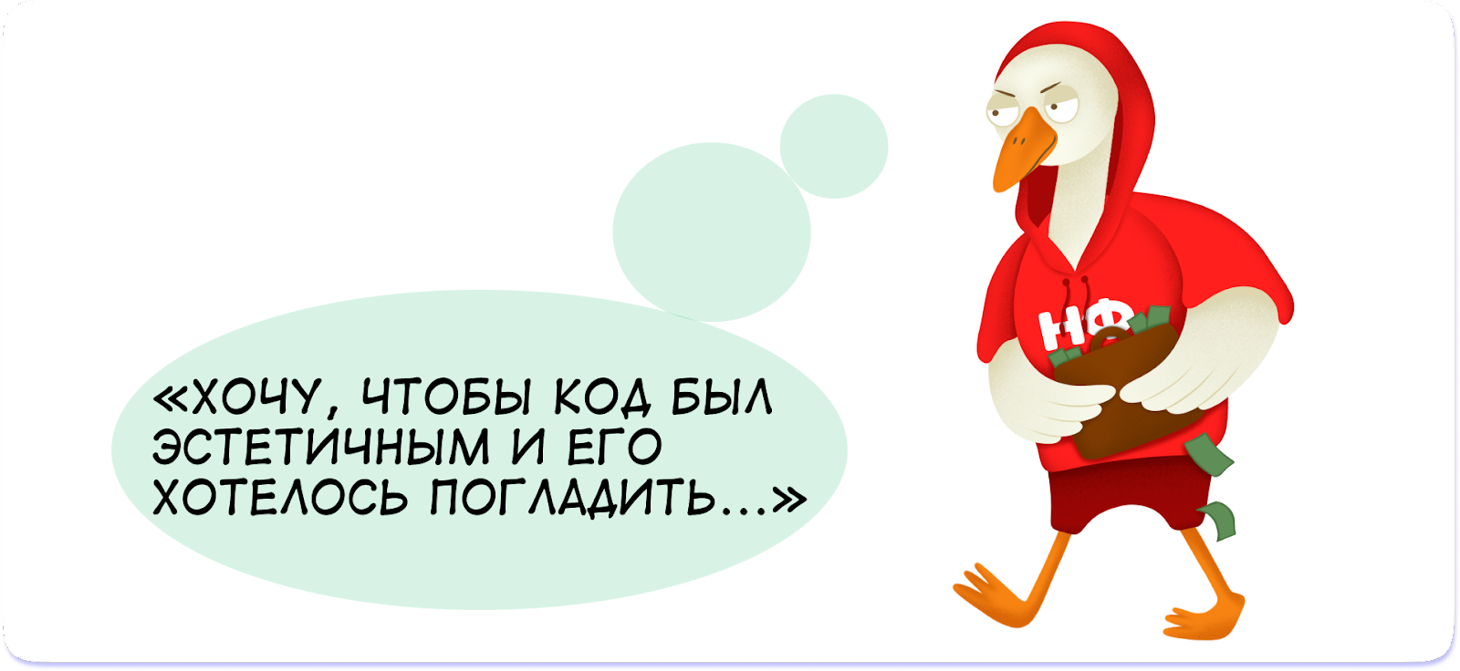 Еще встречаются эмоциональные техзадания — в духе «хочу, чтобы код был эстетичным и его хотелось погладить» или «нарисуйте деловой и лаконичный, но бунтарский логотип, чтобы он вызывал ощущение духовного подъема и желание заплатить много денег».