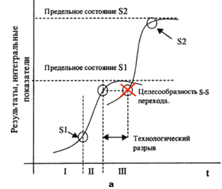 Вопрос в том, когда нужно начинать новую кривую. И ответ здесь такой: если выручка начала падать — запускать уже поздно, потому что для новой кривой нужен некоторый разгон. На графике он называется технологическим разрывом между стартом нового продукта и моментом роста выручки.