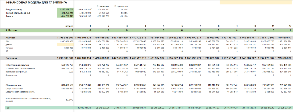 Как построить финансовую модель для глэмпинга по шагам + шаблон