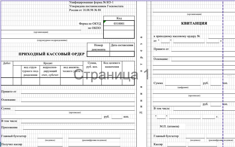 Приходный кассовый ордер (ПКО)