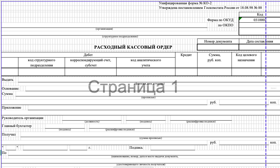 Расходный кассовый ордер (РКО)