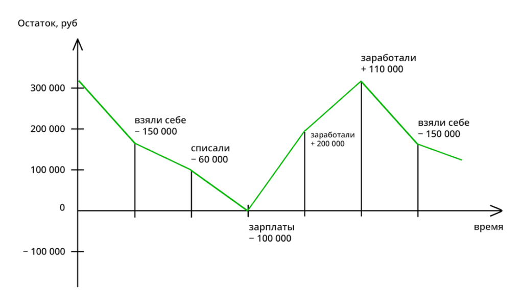 Представим: вы, как обычно, в середине месяца взяли себе 150 000 ₽, раздали зарплаты, а к концу месяца узнали, что вы в минусе на 60 000 ₽. Чтобы выдать следующую зарплату сотрудникам, вы кладете в кассу из своих и начинаете разбираться.