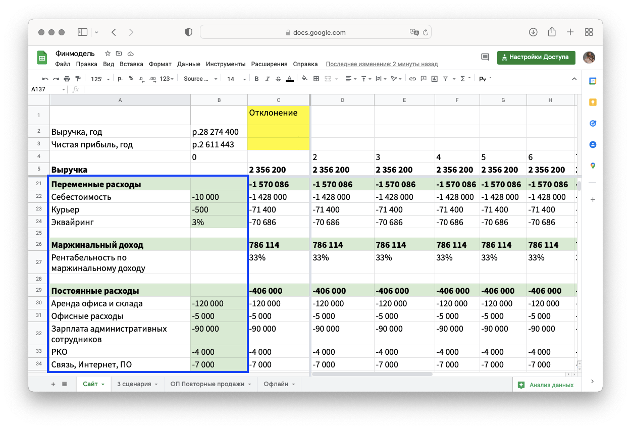 Так нужно пройтись по всем показателям, но мы этого сейчас делать не будем, — уверены, вы уже поняли принцип. Давайте лучше посмотрим, что в итоге показала финмодель: