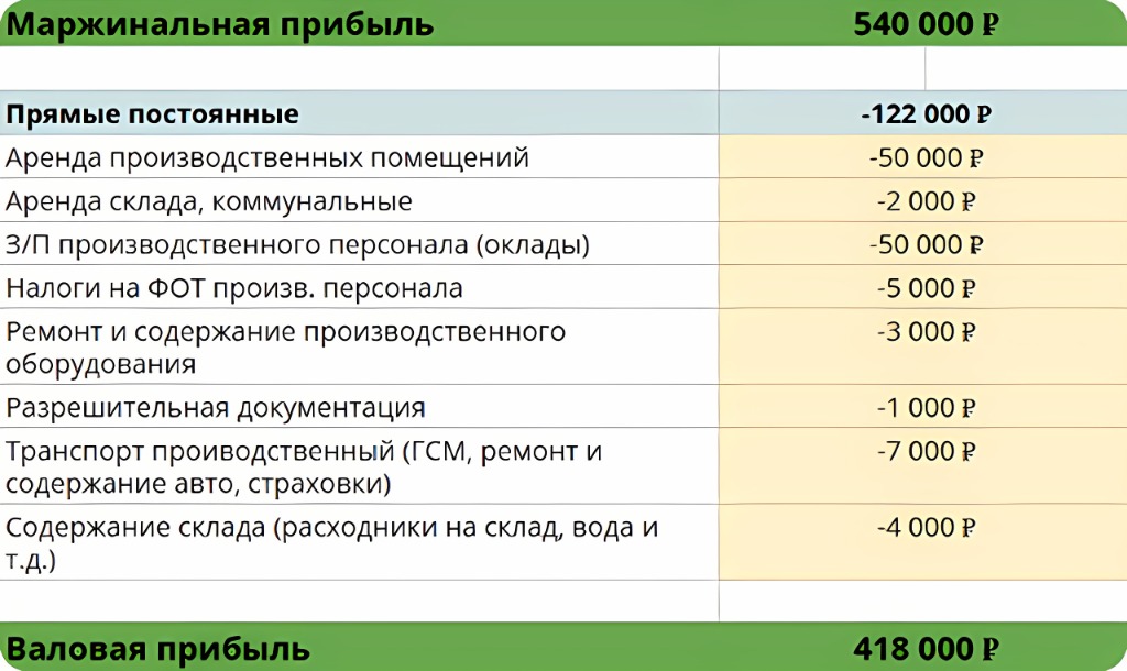 ↑↑↑ Прямые постоянные — производственные расходы, не привязанные к конкретной сделке