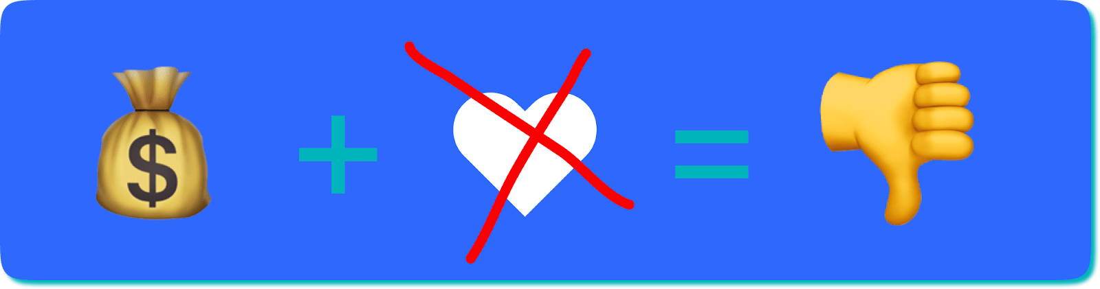 Когда у бизнеса развита только нематериальная мотивация, а денег на премии и повышение зарплат нет, то сотрудники тоже не смогут проработать долго. Да, команда супер и офис красивый, но этим семью не прокормить.
