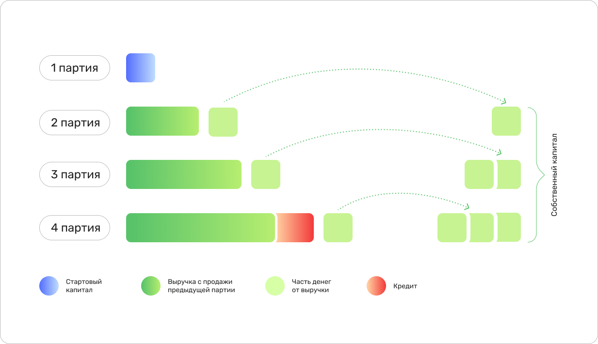 Когда бизнесу приходится вкладывать в следующую партию всю выручку и еще столько же брать у банка в виде краткосрочного кредита — это как раз развитие бизнеса не по средствам.