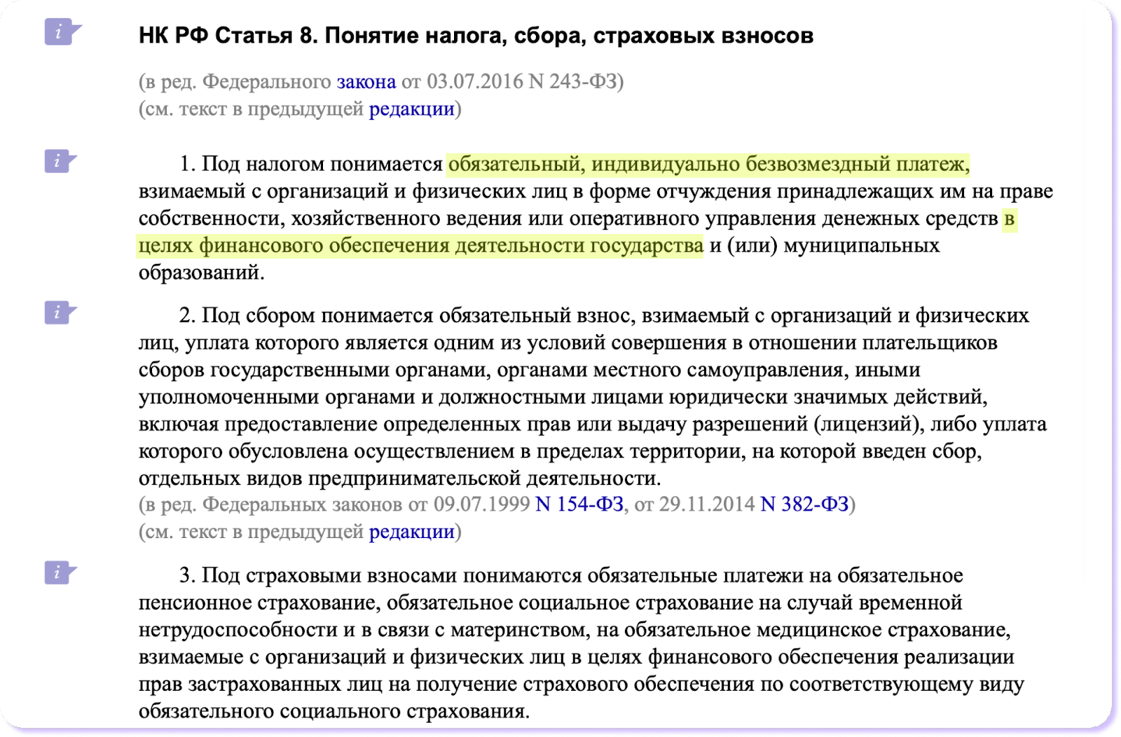 Вот как понятие налога описывается в законе — статье 8 Налогового кодекса РФ: