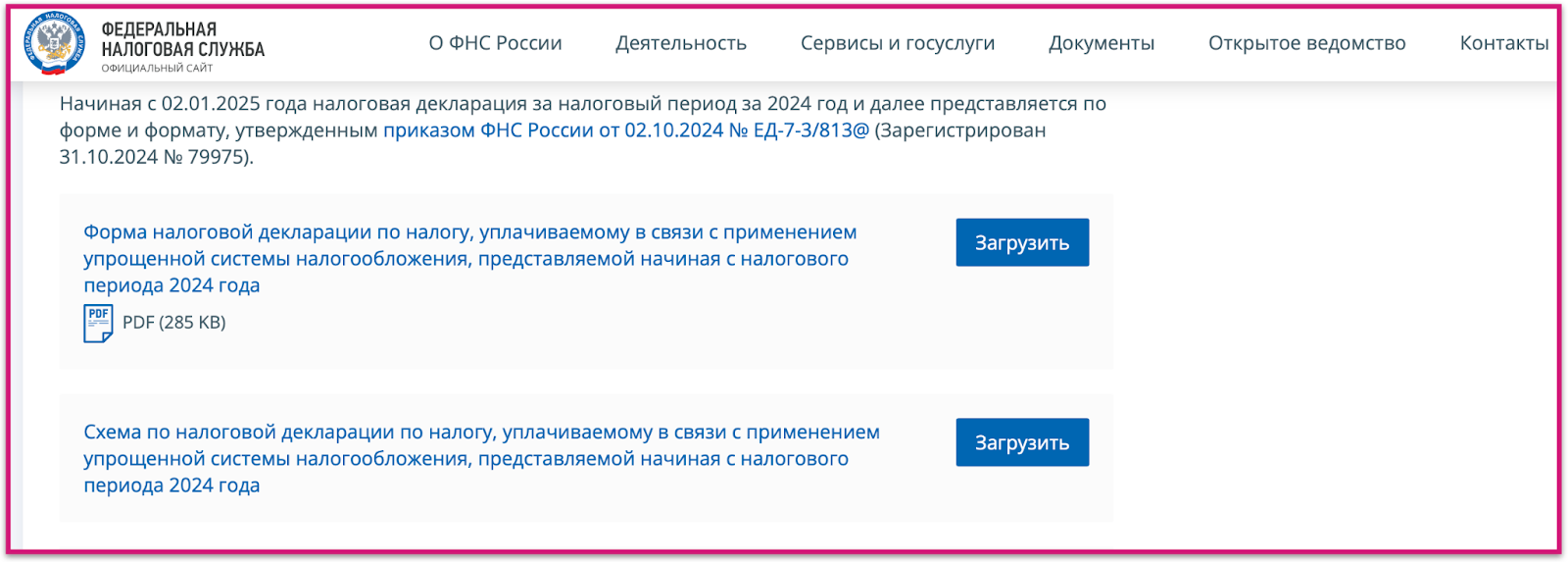 Изменения в декларации: со 2 января 2025 года действует новая форма декларации по УСН (приказ ФНС от 02.10.2024 № ЕД-7-3/813@).