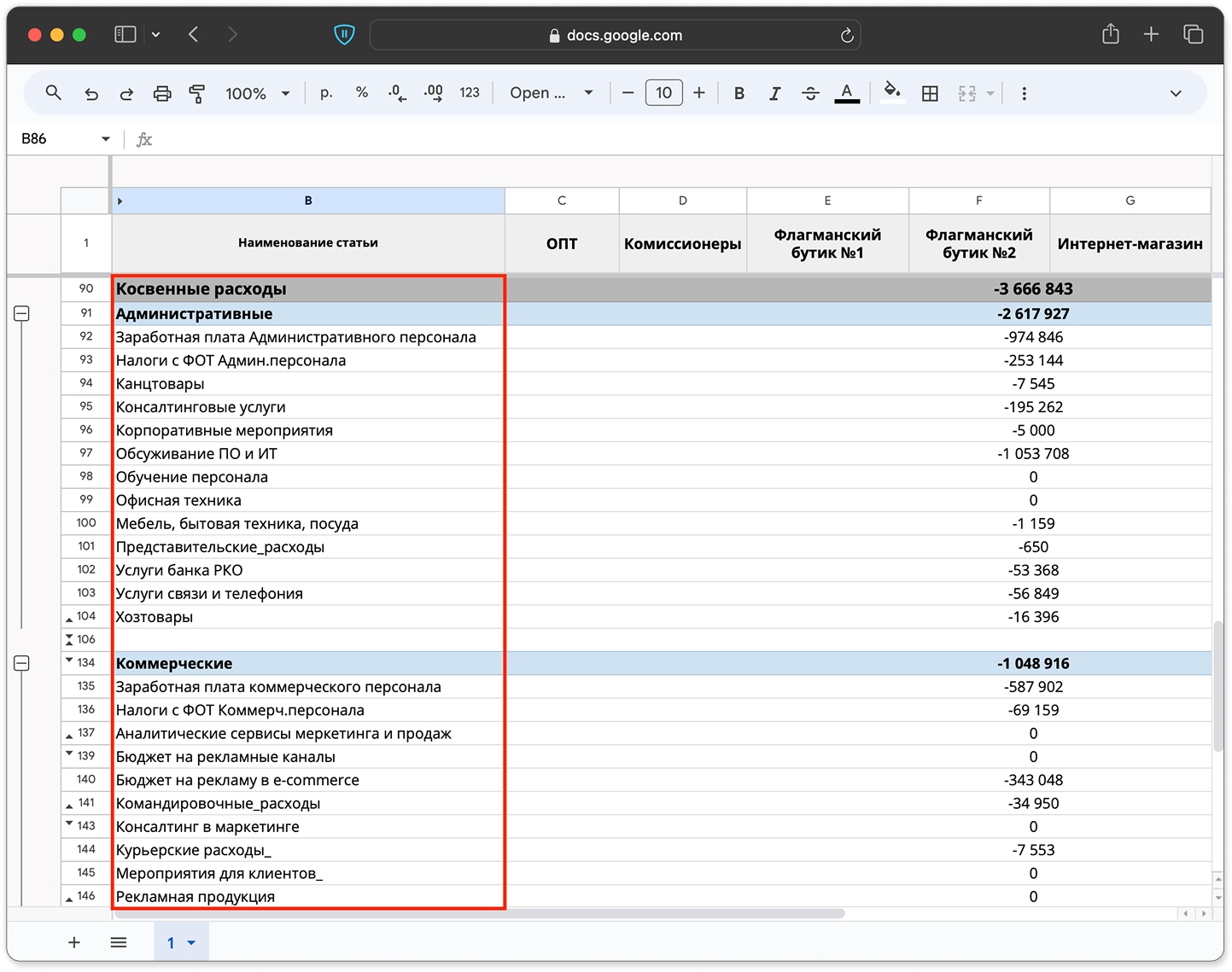 Минусовая чистая прибыль — не всегда катастрофа. Например, в инвестиционный период компания намеренно вкладывает больше, чем зарабатывает: открывает новые точки, инвестирует в маркетинг,, набирает команду. Ещё одна причина — сезонность: в низкий сезон прибыль может уходить в минус, но по году бизнес выходит в плюс. Поэтому чистую прибыль всегда смотрят в динамике и в контексте, а не как срез одного месяца.Какие статьи расходов чаще всего оказываются завышенными при анализе ОПиУ?