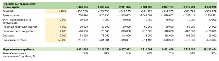 За счёт понимания структуры затрат компания скорректировала ценообразование и увеличила средний чек на очных курсах. Собственники сфокусировали внимание на рентабельных направлениях и увеличили численность учеников.