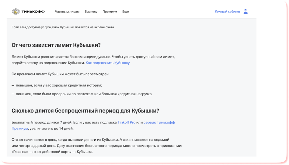 Банки могут называть овердрафт для физлиц по-разному. Например, Т-банк называет это «Кубышкой» — некоторая сумма, которую банк разрешает потратить на покупки, снятие, платежи, переводы. И при этом не платить проценты.