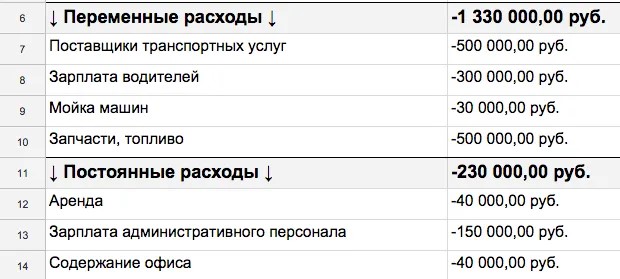 Постоянные расходы — это то, за что мы платим каждый месяц: аренда офиса, интернет, канцтовары, фиксированная зарплата бухгалтера. За это мы платим примерно одинаково каждый месяц.