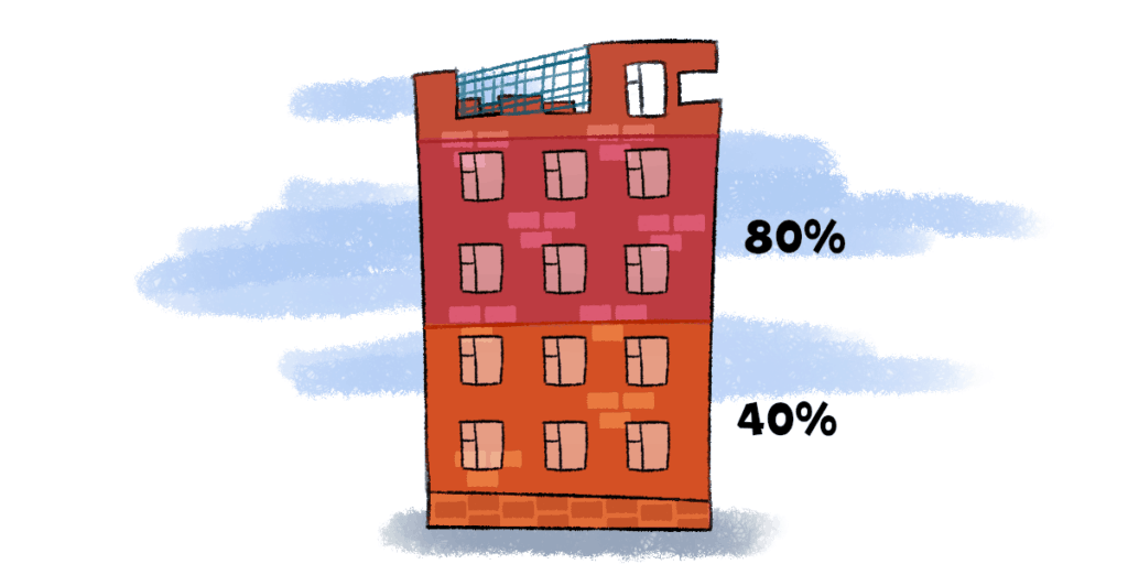 Например, заключили договор на строительство пятиэтажного дома на 20 млн ₽. За полгода полностью сдали два этажа, хотим посчитать выручку. Для этого оцениваем результат — выполнили 40% работы. Значит, признаем выручку в размере 40% от полной суммы — 8 млн ₽.