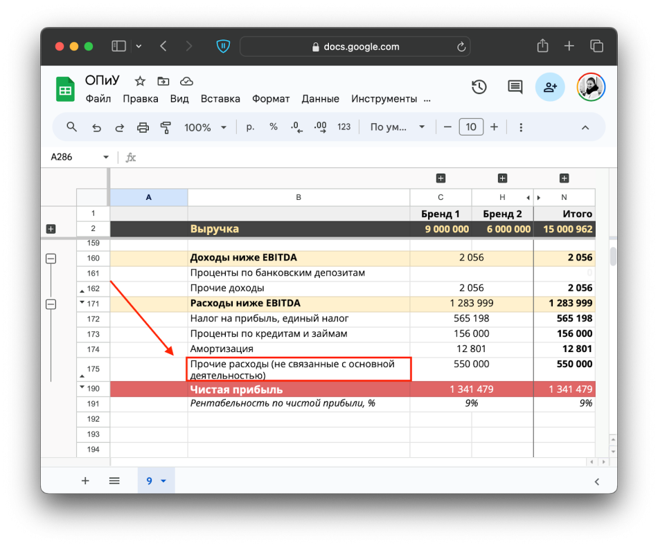 Аналогично и с прочими доходами — они также не связаны с основной деятельностью и вносятся ниже операционной прибыли.