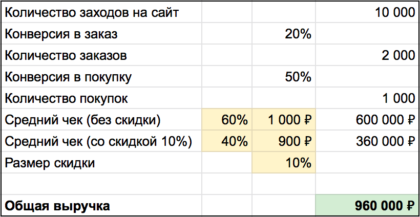 Представим, что у Ивана нет четкой скидочной политики и он продает то со скидкой 5%, то со скидкой 7%, то вообще без скидки — и нигде это не учитывает. Но при этом он знает свою выручку и количество заказов.