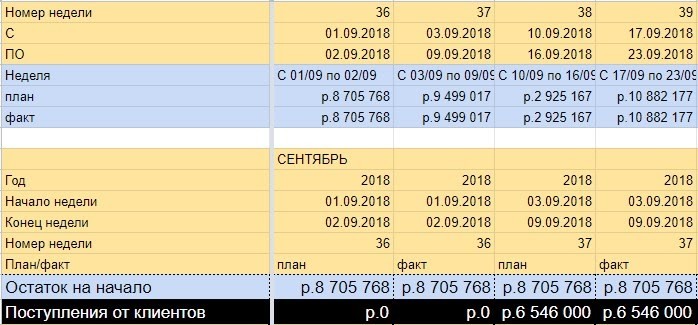 Для этого в примерочной мы разбираем все этапы движения денег: когда и какую сумму нам нужно потратить на материалы, когда надо расплатиться с сотрудниками и когда расплатятся с нами.