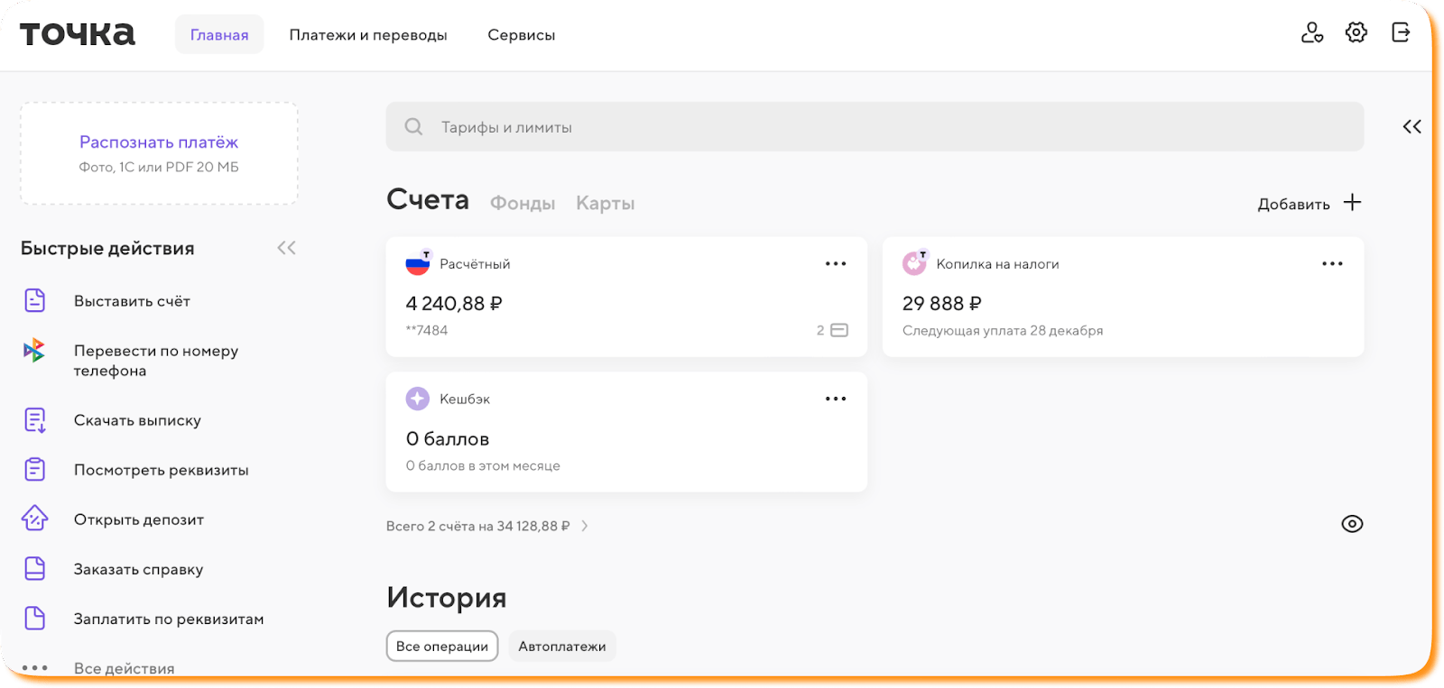 Расчетный счет ИП в личном кабинете банка «Точка»