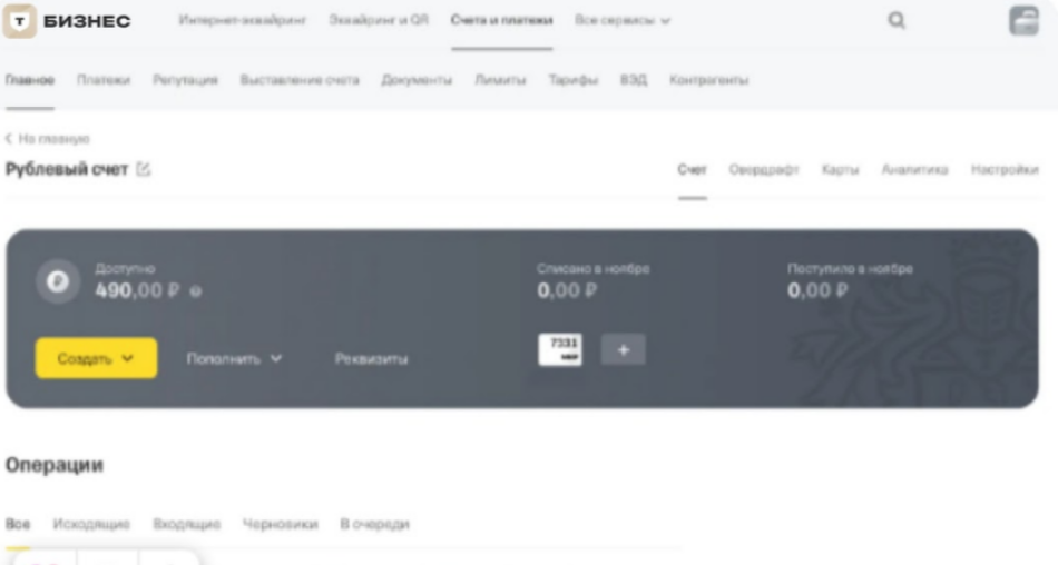 Расчетный счет ИП в личном кабинете «Т-банка»