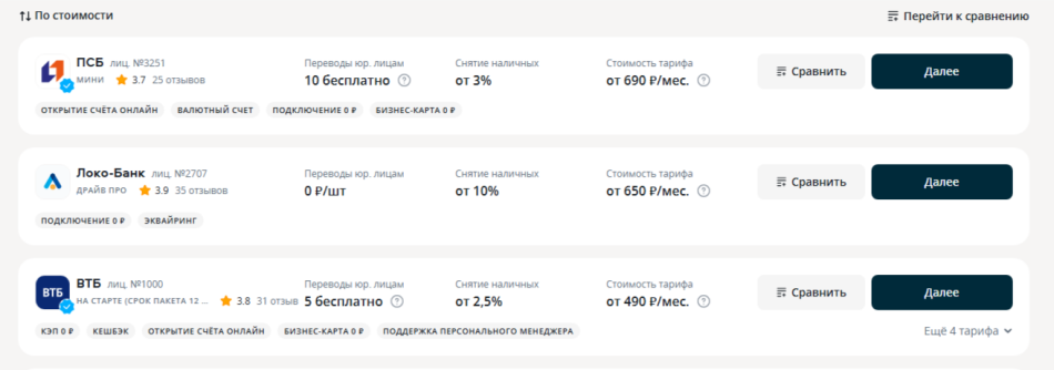 5. Условия тарифа. Большинство банков предлагают бесплатно открыть счет и не берут деньги за первый месяц. Еще могут предлагать безлимитные платежи юрлицам или брать комиссию за каждый отдельно. Если планируете принимать оплату картой, важно уточнить цены на эквайринг.